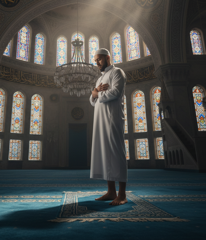 Translation: “All greetings, prayers, and pure words are for Allah. Peace be upon you, O Prophet, and the mercy of Allah and His blessings. Peace be upon us and upon the righteous servants of Allah. I bear witness that there is no deity worthy of worship except Allah, and I bear witness that Muḥammad is His servant and Messenger.”